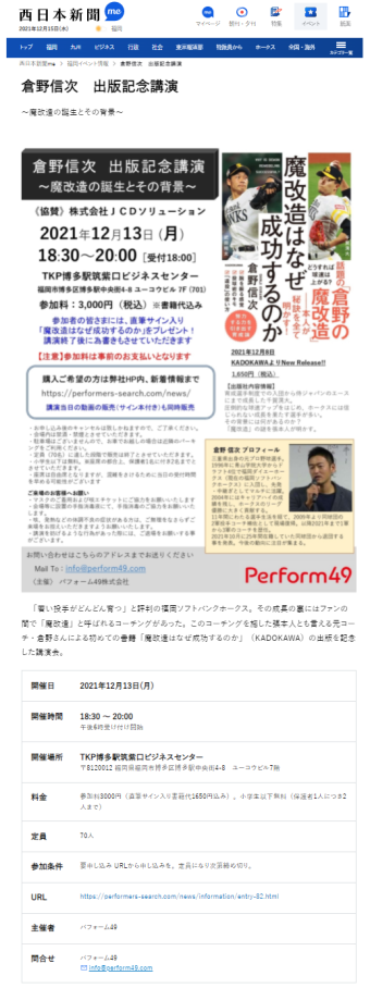 講演のインフォメーションに関しては、西日本新聞にて紙面やWEBにて告知をいただきました。